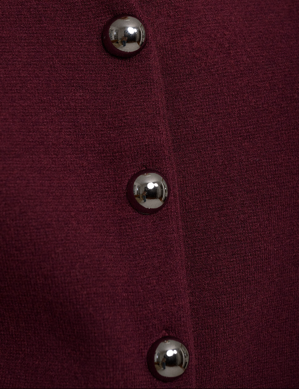 Burgundy knit shoulder padded knit vest with large deco matte silver buttons .